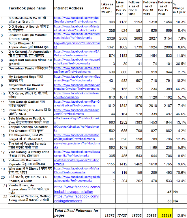 फेसबुकावरील स्मारके...Status of My Facebook and Wikipedia Pages at the end of Year 2020